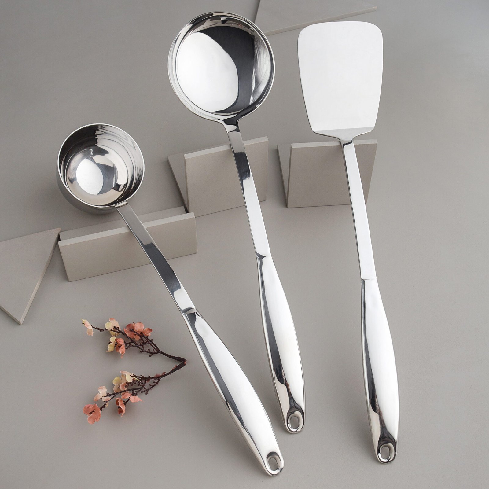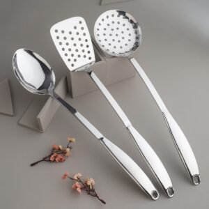 The Hollow Plain Kitchen Set by A-One Cutlery is designed for those who appreciate simplicity and practicality in their kitchen tools. Crafted from high-quality stainless steel, this set offers a clean, minimalist look while ensuring long-lasting durability and utility.